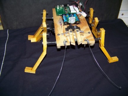bugbot 1 is for most an boebot with modified chasis it has a pir motion sensor,2full rototation servos and a parallax standard servo for the mandable it also features a mercury tilt switch so the bug knows when it should stop moving in tilt situations like table edges to atempt a reverse or if you pick it up it will attempt to pinch you with its functioning mandable the mandable also has a touch sensor to know it has caught you as well as sound and light sensitivity I also included a phillips pcf8574 I2C expander to give me 8 more input/out puts and the ability to connect to my ti86 programable calculator aswell as the parallax BS2 homework board as the main board. also an ADCµphone to do sound sensitivity&mesurement and and audio amplifier for outputing audible communication and different types of alarms. I am now working on a solar driven dynomo to power the rechargable battries and bugbot 1 will then become a scorpion with three robotic arms aswell,one as the tail.