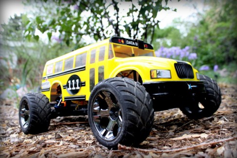 The body is a Parma PSE "Skool Bus" lexan body custom painted by yours truly with custom decals printed on inkjet self-adhesive paper and coated with automotive clear coat.