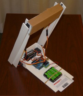 After a few more hours hacking and gluing the cardboard box that the parts came in, I had this: