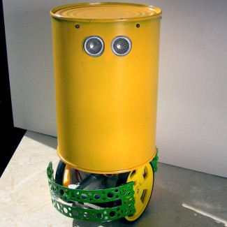 Navigate around via ultrasound, avoid some obstacles, play Monty Python tunes