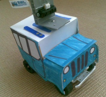 Then I transformed my corn flakes box into a Jeep cover, Servo included.