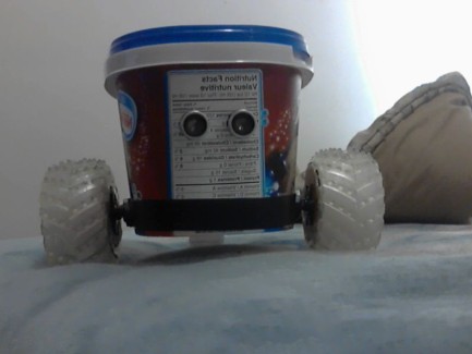 This is my ice cream tub robot "Leslie". I named her after my mom because my mom is always there for me and she always encourages me to build robots and do what i like to do.