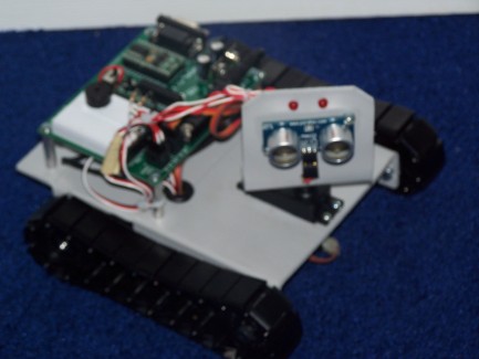 This is the first robot I have ever made. I have been on this web site for a while, waiting to order parts and start building. Well, here it is!!! This robot navigates around, using a PING))) Ultrasonic Distance Sensor, to avoid objects. The chaise and the sensor holder is made from sintra (don't know how to spell it, hope you know what I mean). There are two servos that control the tracks and a servo to move the sensor left to right, to avoid objects. I'm still working on the programing to raise the RPMs, to make Mac go faster and turn faster. Had some problems with some objects. There are two LEDs that are mounted at the top on the sensor holder, which go on while the servos are on or moving. The "brain" is a Board of Education C, which came with a Boe-Bot kit that I bought, basically to know what I was getting into, thought it would work perfect with this project. Finally, this robot is powered by 4AA batteries. Having problems uploading pictures??? Will figure something out!!! Sorry about the confusion in my last post!!! Comments welcome!!!