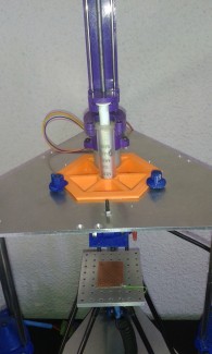 We developed an alternative method for making PCB vias through-hole using a robot. There are several commercial products for making DIY PCB vias. Some based on special pins made for this purpose but they are ugly, cost money and difficult to install. Others methods are based on conductive epoxy which also is expensive and resistivity is not good. Electroplating is the method used by the PCB industry. There are on the internet some interesting experiences, but all of them require special equipment and unpleasant chemical products difficult to find. The traditional DIY method consists in threading a wire through the holes and then soldering it and then cutting it off. For example, if we have 100 vias in our PCB, we have to insert the thin wire on each hole, cut it and solder it 200 times. This is time-consuming, but also tedious, absurd, prone to failures and produces a melancholic state of mind.:-) So we decided to innovate in this area developing a new method which consists in drilling blind vias instead of holes and filling them with conductive ink. Really we don’t need holes to make vias. Well, we need holes, but not through-holes. I mean, we can avoid drilling to bottom copper layer and make tiny wells instead of vias! Then we can fill the wells injecting the conductive ink. We do it from inside, inserting a needle into the well, mainly because it will be difficult to fill it from outside due to the air inside the well and also surface tension forces. Both are simple tasks for our robot. We developed all the software which do it, even an ULP for Eagle Cadsoft.We also implemented an algorithm which detects when the needle touches the top copper layer and retry again. You can see how it works on the video when the music stops.