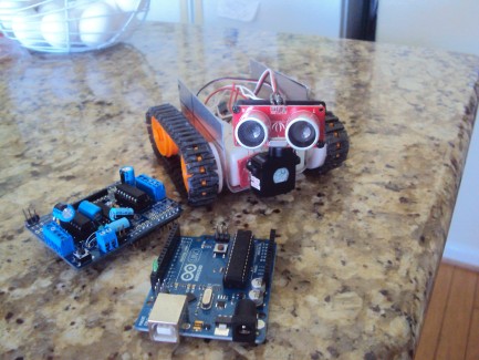 hello again heres a little update since chuckcrunch is making a robot like mine but his has a servo i put one on mine too also ive got my motor shield