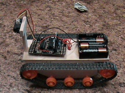 my robot is using the picaxe18 power board from sparkfun.com. he turns both ways and decides which way is better to go and goes that way