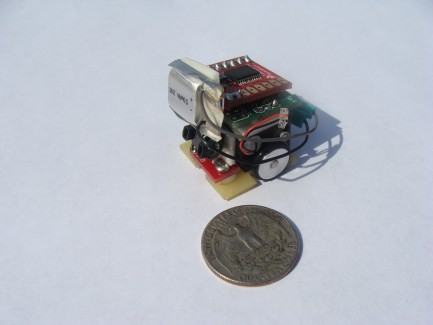 I think this bot "is" many things. Smallest robot using the Arduino bootloader ? Smallest robot with a microcontroller on LMR? Best use of Solarbotics Planetary Gear Boxes?