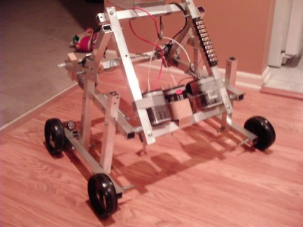 This is my "NEON" Biped. It is about 2.5 feet tall, and walks at about the same speed as a person does. The video shows it running on a smooth surface, so it doesn't go anywhere, but outdoors it runs!!