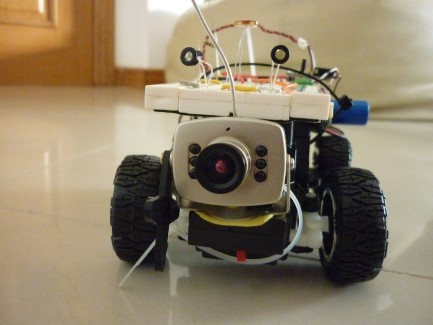Small project to control an RC car via pc. I've placed a small RF pinhole camera in the car so I could be used for manual driving and for image processing.