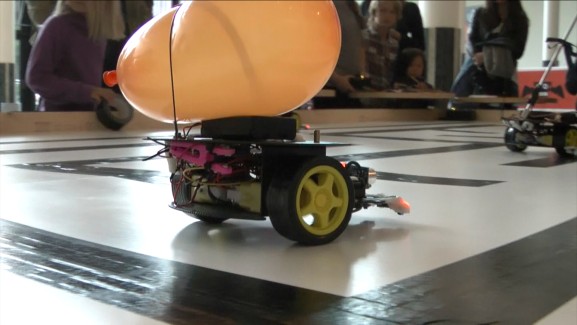 On the video you can also see how a baloon pop was registered. Once a ghost registered a pop, it drove out tho the edge of the maze, to get a new balloon by me. And there was an overall timer on the game, after which all robots stopped. Winners got a Coke ;)