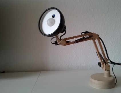 this is my latest project of an autonomous lamp, it is controlled by an Odroid computing the complex stuff like face recognition and the trajectory computation and an ATMega for generating the PWM signals for the servos.