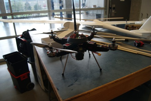 So I have always wanted to build a Quadracopter and I finaly did it. A special thanks to hardmouse who donated the an old GAUI frame that I was able to hack up to add my own landing gear, build custom motor mounts out of aluminum and threw in my own electronics! The brains of the operation is a hobbyking Quadracopter control board that uses 3 gyros to stabilize the quad and send control signals to ESCs to control the Quad.
