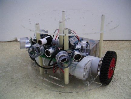 This robot was built using the RB-9 chassis available from RobotBASIC.org. It is powered by a RROS-based PCB that uses 5 ranging sensors to create a Virtual Sensory System (VSS) that includes 4 bumpers, 5 proximity sensors, and a turret-ranger). It also supports 3 lines sensors, a compass, a beacon detector, and battery monitoring. The video points out the major parts, and shows how easy it is to program this robot by explaining a simple application where the robot finds and moves to objects that are close by. Complete information about the RROS can be found in the RROS User's manual that can be downloaded here: http://robotbasic.org/resources/RROS_Users_Manual.pdf Appendix E of the manual provides the full source code for the application shown in the video. The abundance of sensors on this robot means it can be used to create far more applications and behaviors than robots that only have a few sensors.