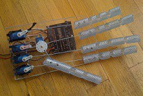 I used organic glass, 5 cheap micro servos, some thread I found at home and a tube I bought from a hardware store.