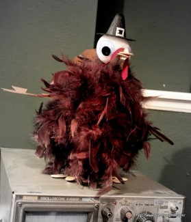 A talking, animatronic table decoration for Thanksgiving, 2011. Decorated and voiced with help from my 2 year old daughter.