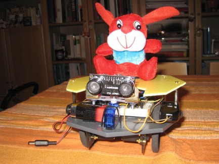 - it goes around, avoiding obstacles with an ultrasound sensor