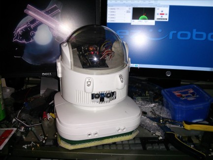 Heavily customized Omnibot Jr from Radioshack. Its an 80s model. I have a thing for the old robots. They have character. :)
