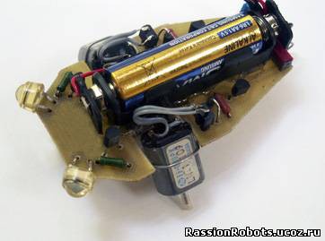 The tiny robot, is structurally executed in the form of a cockroach. Its main difference from similar robots a food of all from one battery pressure of 1,5 volts. The Robot-svetofil is capable to run behind a light source not directed on its photo cells. High light sensitivity allows the robot to run for light "зайчиком" on a floor from a lantern ray of light, that is he perceives reflected light! The minimum quantity of radio components does this robot accessible to repetition. As the power supply it is necessary to establish "a fresh" galvanic cell (battery) pressure of 1,5 volts or the charged accumulator.