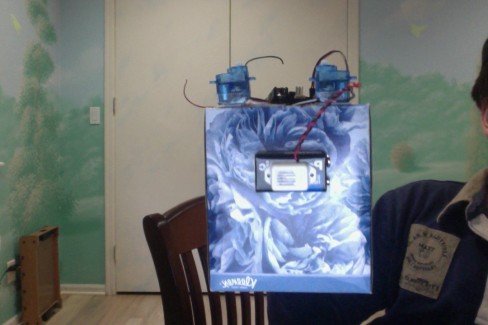 this was made of my little robot, blinky. he wasn't working and i wanted to make a new bot and i got new parts, so i got this. he will hopefully: make a noise when he drives, and will avoid obstacles.