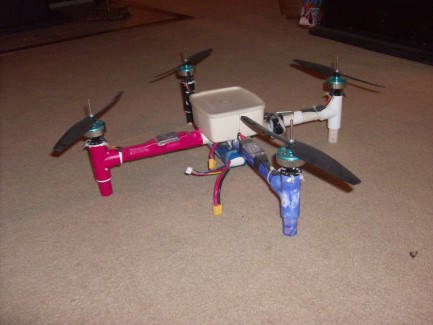 So anyway, after I totaled the wood frame learning how to fly, I built this one. I already explained the benefits of PVC, and the tupperware container that houses the electronics is close to indestructable.