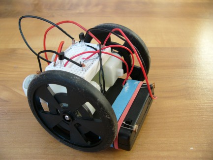 So after lots of hard-work, frustation, time, spending money on wrong parts; I built a robot. Its a Photovore based on NPN transistors. when its LDRs are pointed towards the floor, it becomes a line follower.