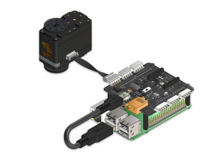 - Connect the Raspberry Pi to the LSS Adapter Board using a USB cable, and then connect the Lynxmotion Smart Servo to the LSS Adapter.