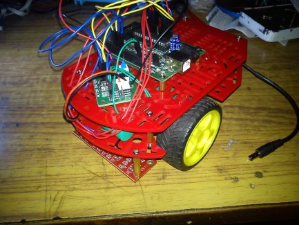 It uses a Magician Chasis as a platform which comes with two acrylic plates, a pair of wheels, a pair of DC geared motors.