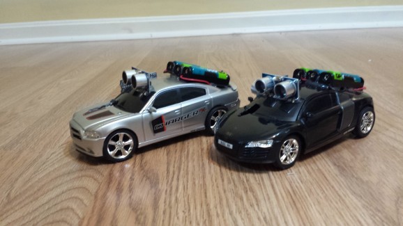 After looking around on the internet for suitable cars, I decided I really needed to see the cars in person before buying them so I went to toys-R-us and bought these two beauties: