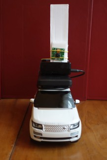 Picking the power bank and the RC car model took a while, because I tried to find the car one with the flattest roof, and a power bank which was light enough, yet had enough capacity. Otherwise the spring-loaded wheels are pushed down too much and steering is affected.
