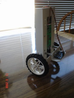 In 2008 I have built a simple balancing robot, mostly a copy from a balancing robot made using a Basic Stamp 2 SX, found on the Parallax Forum, that I have adapted to work on Arduino. The robot uses servos modified for continuous rotation and a Ping))) sensor for balancing. A potentiometer was added to adjust the balancing point, because it depends greatly on the level of the surface. Also I installed a serial LCD to display the distance and the PID values.