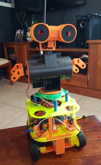 I always liked Dickels MD#3, but I don't have the time to craft it out of styrene, so it's mostly printed and uses left over parts from other robots. The base was an idea to make a small omni directional drive with small servos for steering and encoders and cheap motors for the drive. There wasn't enough space in that design. Now its the right size base for the MD#3 body I replaced the stepper motors with mini servos that reduced complexity. I had some 3.2-volt lithium batteries from another project I run the motors on a 6.4 volts battery pack and the Arduino on the 9.6-volt battery pack to reduce noise