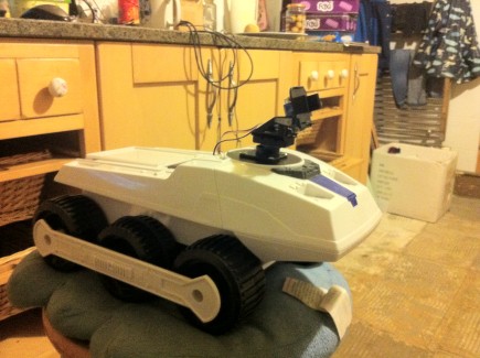 This is as far as I have got but planned for it are a camera on a tilt and turn, that I might put where the ultraonic is now, plus one more camera, more ultrasonic sensors, gyroscope, gps and solar panels for charging and anything else I can think of. If I can get one cheap enough I am thinking of a robot arm fixed to where the ultrasonic is.