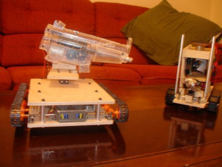 To that end, I've started building what I'm tentatively calling the BullyBot. It's going to be a tank-tread-based robot with an AirSoft machine gun mounted on top, and it will find the other robots in the room and shoot at them. It builds character.