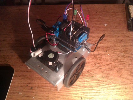 added a better cowel to the PR, by chopping up a pen with a dremel. And added "direction" LEDs, so i can test it on the desk without it wandering off! (there are seperate switches for the duino, and the motor shield)