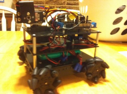 This is the improved version of the Edwardo V2.0 posted by Grimjack1973. We are working in colaboration and had to change the chasis design due to a few flaws. We have finished assembly and moved onto programming however I have hit a problem in the programming area. The aim is to allow the robot to completely non-autonomous roam around while using the pan-tilt servo system to move the Sharp IR sensor located at the front to perform obstacle avoidance. I have provided a text file of the sketch along with as much information as possible in the "additional information" section and shall be happy to provide anymore if needed.
