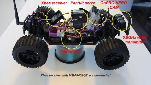 - Sensors / input devices: Maxbotix EZ1, Sharp infrared sensor, DFRobot flame sensor