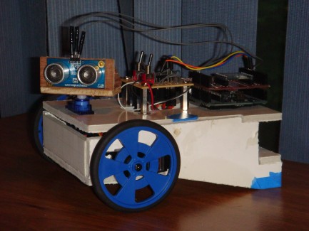The body is foamcore that was cut using my homemade 3-axis machine (it is mostly wood so I cant bring myself to call it a Mill). The CR servos I picked up years ago at the Trinity fire fighting contest. The wheels and micro-servo are from Solarbotics. The Arduino and xbee-shield where gifts. The ping sensor and remaining electronics are from radioshack.