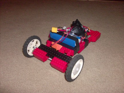 I orriginally designed it to run with the HOG in the front and the wheels in the rear, but I found that the excessive speed of the motor caused the robot to skip and not accelerate effectively, so I just swiched the controls and made the wheels the front.