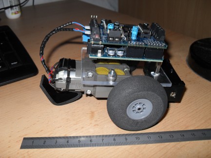 Finaly got to start building my first bot. Theres no plan so far what it will do. Just spent about 2-3h tinkering on the base, with a lot improvisation. Power source will be a 9v block and the main Sensor will be the Sharp IR. More information will follow when i come to add the power source and the main sensor. Then i'll start writing test code and maybe i'll add an Sparkfun SerialLCD.