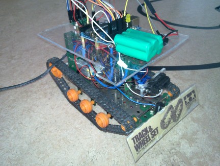 This is my entry for the 2011 Swedish National Robitcs Championship. It finished on a shared last place, since my code was written for dark lines on a light surface and I forgot to change parts of it :(