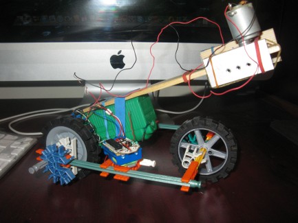 This robot will move forward, backward, and turn left and right and this robot will shoot water bottle caps using a dc motor and this robot control with a remote and the drive train of this robot is build using K'nec