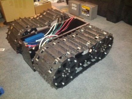 This is a work in progress ATM, my major obstacle is coming up with my own tracked driving system, including every aspect of the track drive system (except making the tracks, they are youth snowmobile tracks). I've been through several prototypes to get to the point now, and actually am changing the drive system again. It buckled under the track tensioning system, so i'm changing it again, actually going back to an older model with some new ideas.