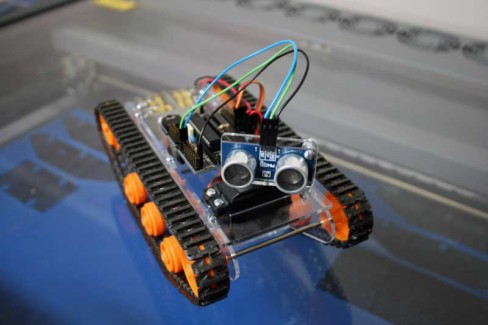 Well, I got busy tonight and finished up my new tracked robot design! I've been wanting to do this for awhile and finally got around to designing and lasering it out tonight.