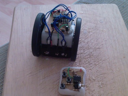 the robot uses a picaxe 18x and two ldr's, i did not use a motor driver in the robot but instead just used two darlington transistors one for each motor just providing on and off in one direction and the infra red remote uses a picaxe 8m.