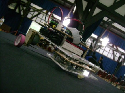 using 6 'nokia' cellphone battery (code bl2c) for motor driver and its power (12v) , plus 4 for the minimum system (mikrocontroller, sensor, etc). i used atmel mega32 for the brain, and IR for sensoric system.