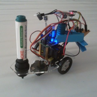 One thing handy about my code is that it allows to interactively drawing without need of constant reprogramming/re-uploading of sketches to the bot. That was how I in the previous evening managed to get to the first draft of the robot drawing, interactively and iteratively.