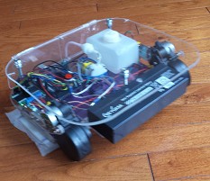 This is another arduino project.. I am using motors salvaged from another roomba (they are great little motor/wheel/encoder combos) with a Polulu MD03A controller (great product).. The controller is an Arduino mega 1280 (cause I had it laying around).. Other sensors include an IR wall sensor, front bumper sensors and software torque sensing.. The pump and pad on the bottom are from a wetjet swiffer that I destroyed.. The tank was just a small plastic jug I had laying around.. The construction is plexiglass purchased from my local Home Depot and cut with a simple jigsaw.