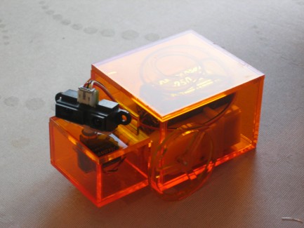 Now I've done a cool, transparent, orange, acrylic chassis! I know it's been almost a month since I updated this, but I was having problems with getting the chassis made, as the laser-cutter is at school. At least I've got all the parts now.