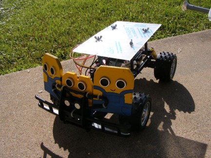 The Minion's eyes are Parallax PING sensors. They started as plain blocks of wood, and I was asked why I had Minions on the front, so they were painted...