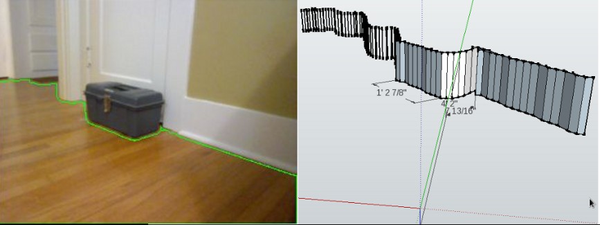 I thought about the data I would like to get out of the image. If I wanted to know the floor boundary I would let loose a mouse in the picture right in front of me, and let it scurry along the floor and walls to trace out a perimeter.